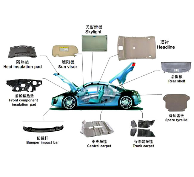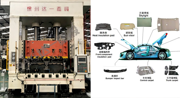 汽车内饰件成形液压机主要应用于汽车内饰件行业的热压成形及切边工艺,如顶棚、地毯、座垫、防火壁绝缘垫、侧围、行李箱地毯等。